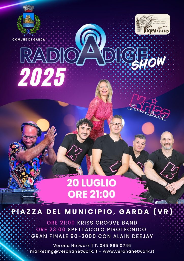 Il Premio sarà preceduto da un aperitivo stampa il 29 giugno a Palazzo Carlotti (ore 12), organizzato dall’Associazione Culturale Rugantino, e seguito, il 20 luglio, dal RadioAdige Show live con la Kriss Groove Band e Alain Deejay dedicato ai più grandi successi di sempre, con intervallo di spettacolari fuochi d’artificio sul lago.